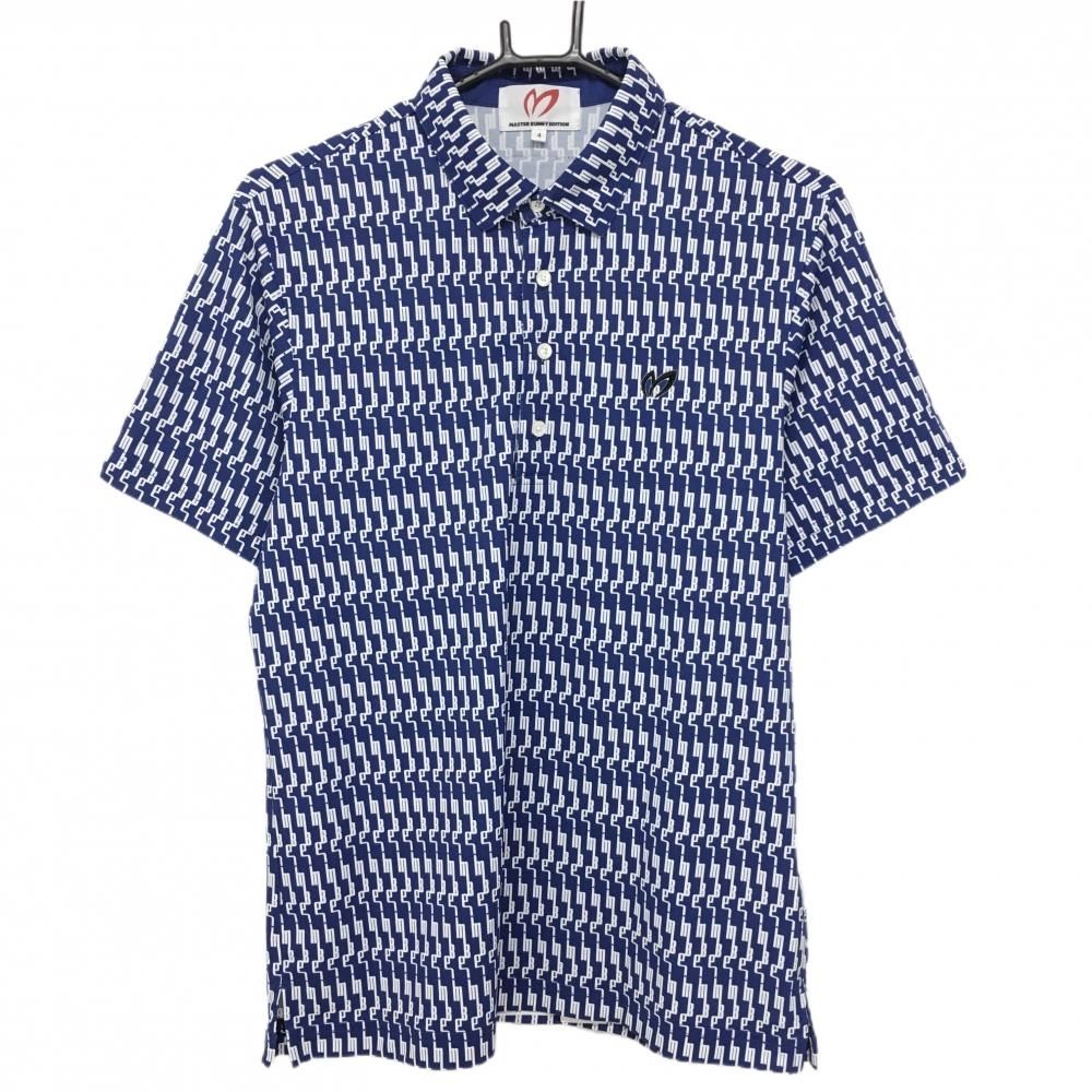 超 マスターバニー 半袖ポロシャツ ブルー×白 ロゴ総柄 メンズ 4 M ゴルフウェア モデル MASTER BUNNY EDITION