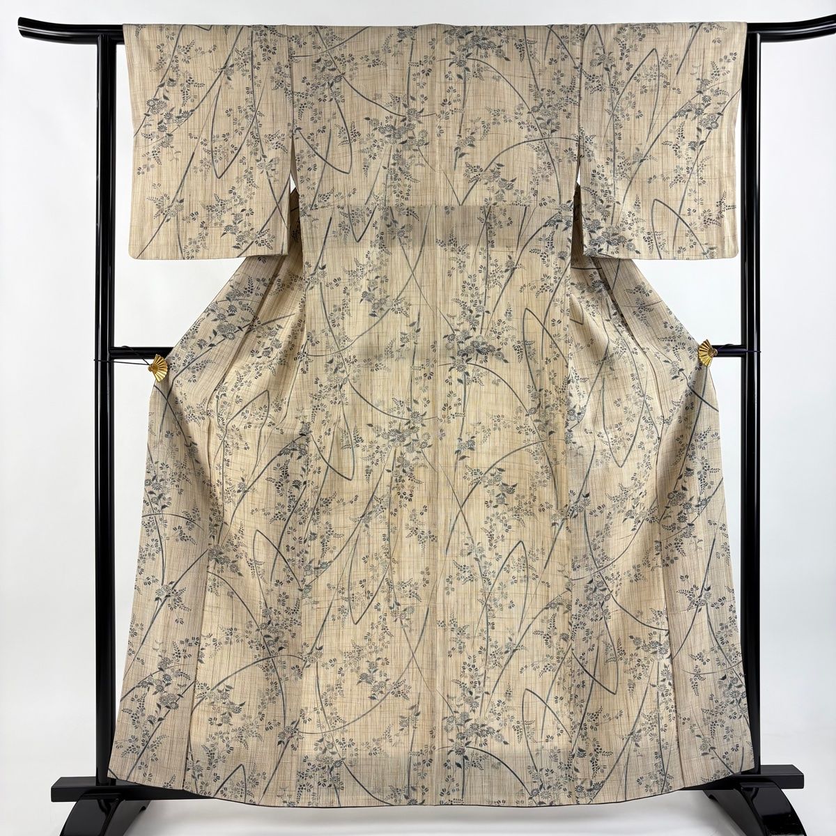 小紋 身丈161 cm 裄丈62.5 S 袷 しょうざん 生紬地 落款 証紙 萩 菊 薄茶色 正絹