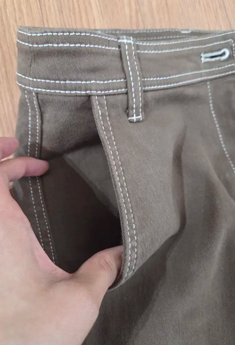 カカオの色とは対照的に白いステッチがかわいいです。