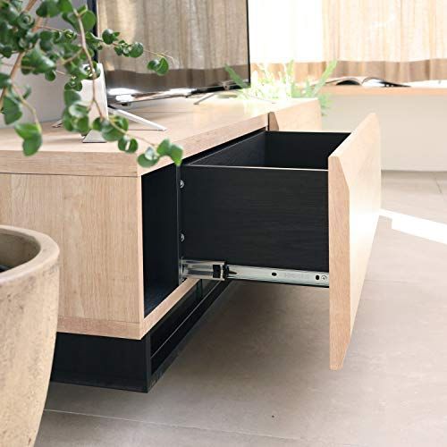 黒の台輪によってテレビ台が浮いているように見えるデザイン。