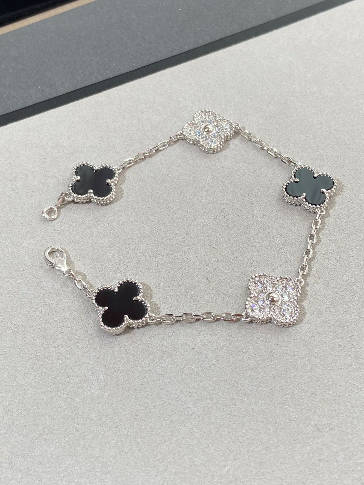 Van Cleef - Arpels ヴァン クリーフ&アーペル 四つ葉のクローバー ブラックカルセドニー スペーサー ダイヤモンド ファイブフラワー ブレスレット| | -WTO輸入1