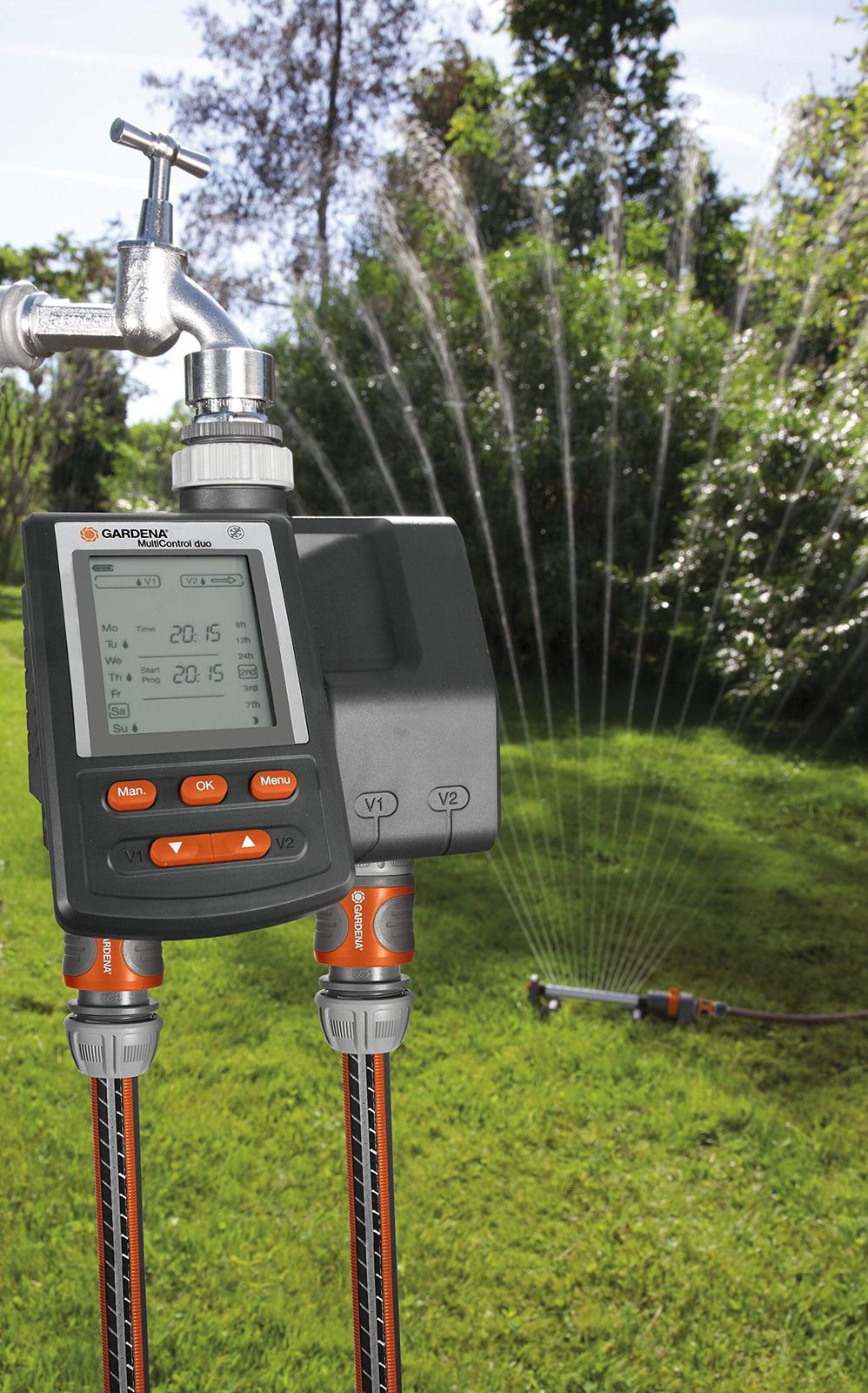 GARDENA ウォーターコンピューターマルチコントロールデュオ 1874-20 ~ 2つの場所それぞれに合った散水プログラム(開始時間、散水時間および散水頻度)の設定が可能な散水タイマー。