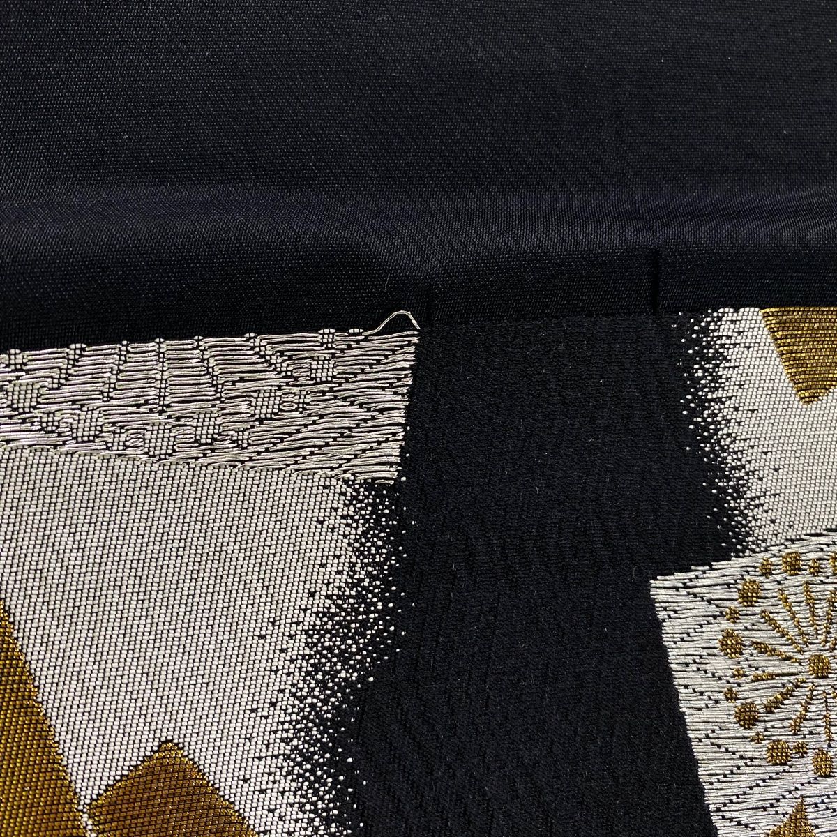 袋帯 秀品 色紙 桜 銀糸 箔 黒 六通 正絹