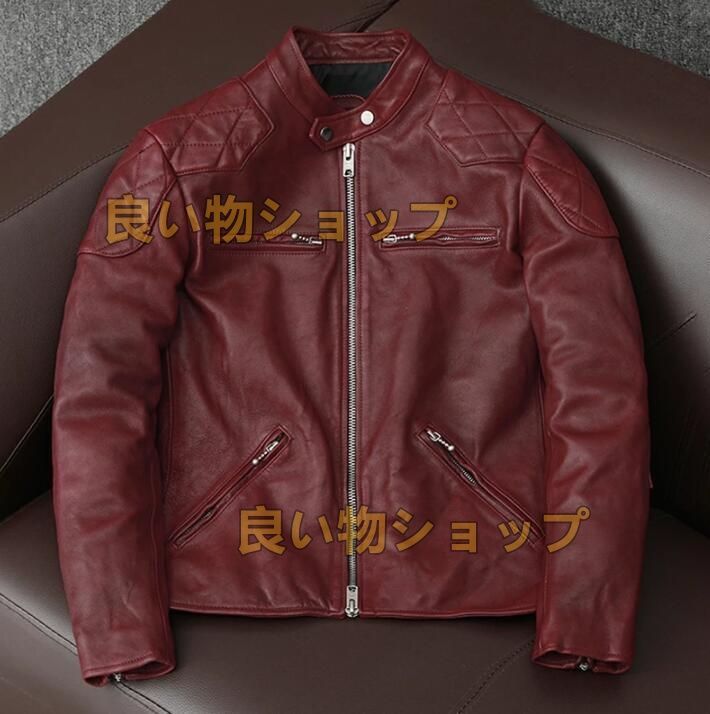 ライダースジャケット レザージャケット 本革 羊革 革ジャンコート バイクジャケット メンズファッショS~5XLレッド