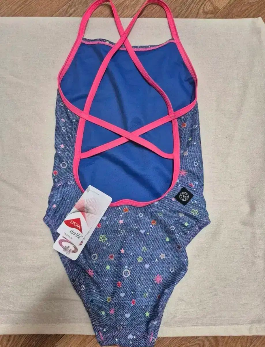 ルマンゴ スプリングクリンクル デニム水着 Mサイズです。レアアイテムで、コレクション価値があります。鮮やかなピンク色のストラップがポイントです。コメントください