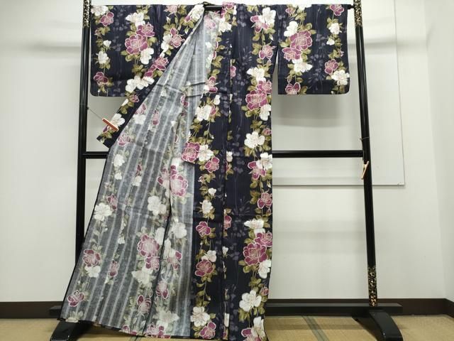 平和屋着物∴夏物 浴衣 薔薇 金彩 綿 ng