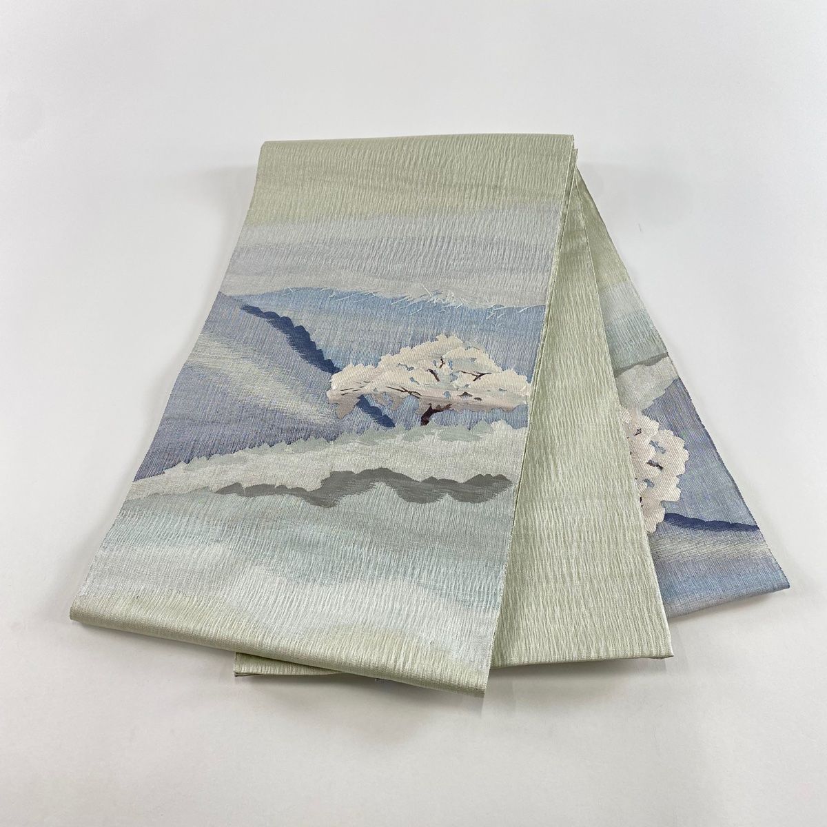 袋帯 秀品 北国の春 銀糸 灰緑 お太鼓柄 正絹