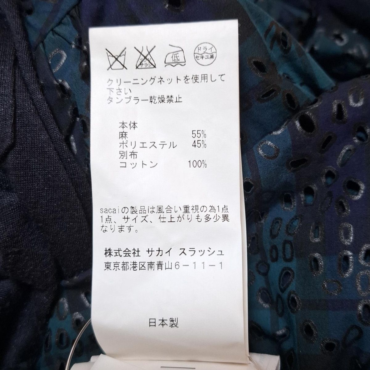 Sacai サカイ 半袖カットソー サイズ1 S レディース - 15-02233 ダークネイビー×ダークグリーン クルーネック|チェック柄