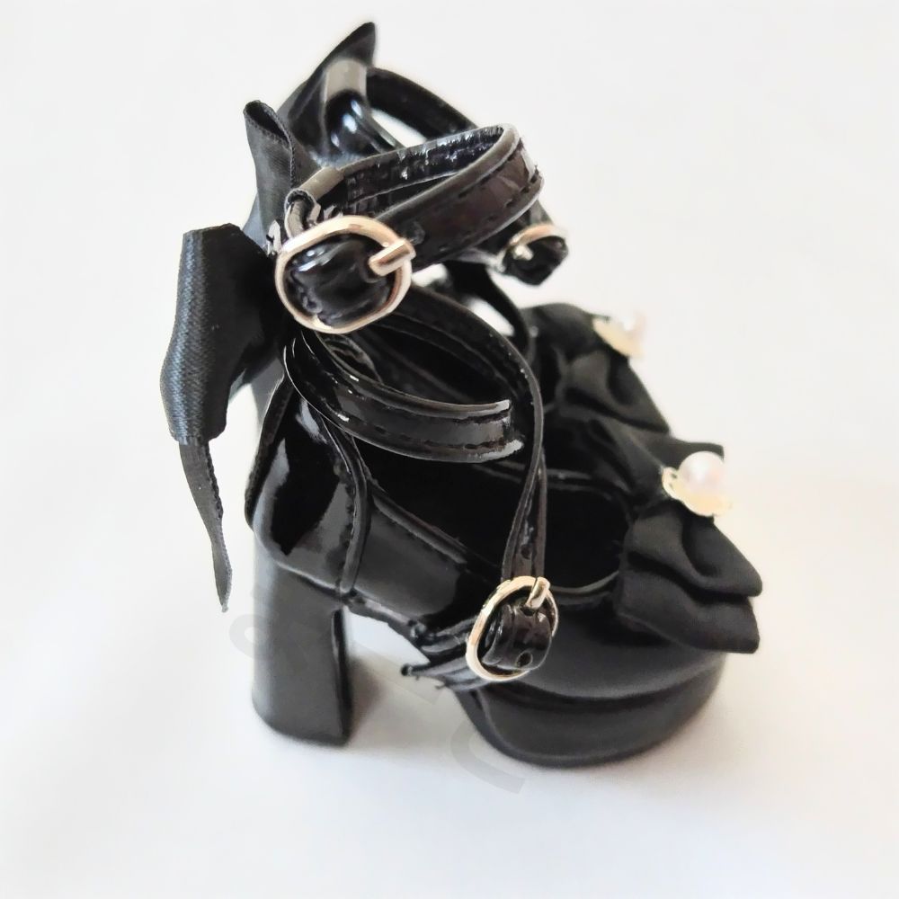 1 4ドールシューズ 厚底靴 40㎝ 人形用 BJD MDD MSD 黒色 ブラック リボン ドルフィー スーパードルフィー 着せ替え 球体関節人形 ドールシューズ ストラップシューズ ロリータ クラシカル レトロ ワンピース
