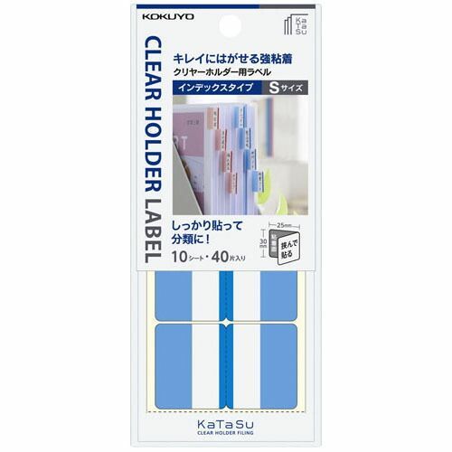 ●クリヤーホルダーに最適な粘着剤を採用していますので、クリヤーホルダーにしっかり貼れて、表示をはがす時はキレイにはがれます。●サッと貼って目印にできるふせんタイプと、しっかり貼って分類に便利なインデックスタイプをご用意しています。●全面のりでしっかり貼れるインデックスタイプ。表示部分には枠がないので、見出しとなる文字を大きく、たくさん入れることができ、検索性向上に役立ちます。折り返し部分にも色付きで、立てて管理する場合の識別に役立ちます。●まとまって手元に置けて、携帯性にも優れた個装付きです。●クリヤーホルダー<KaTaSu>(ラベルガイド付き)と併用すれば、見出し位置がキレイに揃います。●市販のクリヤーホルダーにもお使いいただけます。【検索ハッシュタグ】#クリヤーホルダー#クリアファイル#ファイル#ラベル#ラベルインデックス#インデックス#青#ブルー