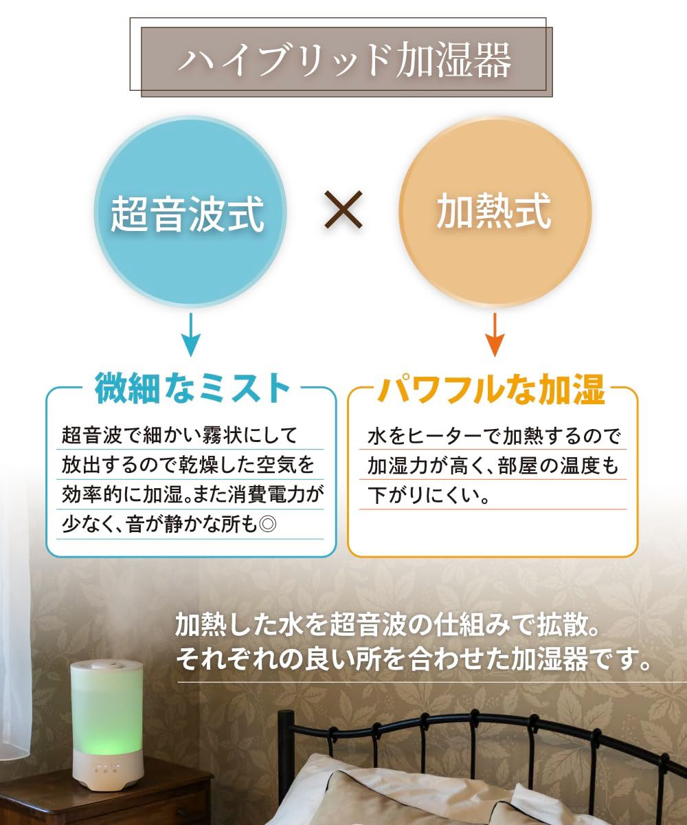 優しくうるおす ハイブリッド 加湿器 3.7 L 大容量 加熱式 超音波 消灯モード 上部給水 最大加湿量300 ml h アロマ対応 12時間連続加湿
