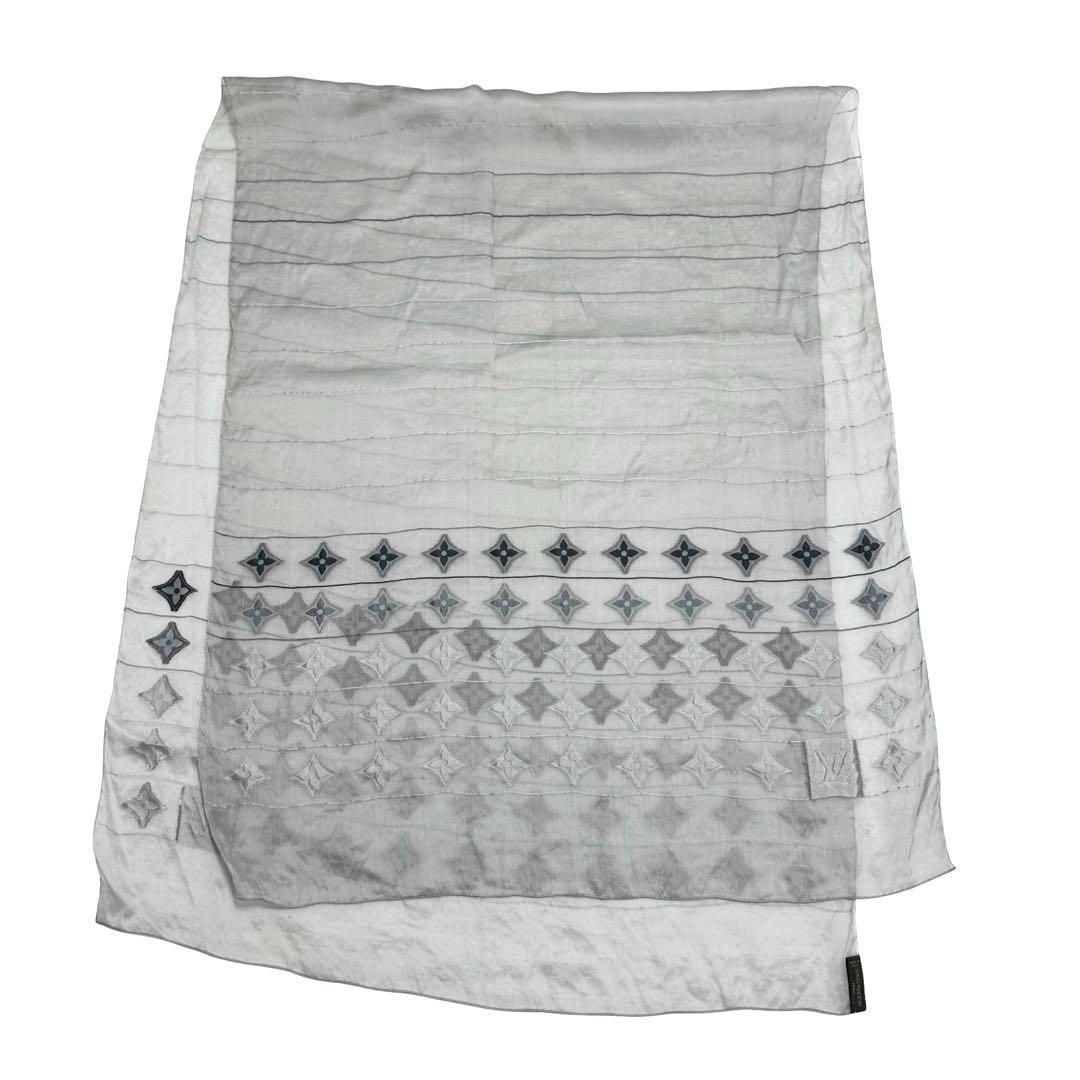LOUIS VUITTON ルイヴィトン シルク ストール ショール マフラー モノグラム ストライプ グレー Made in Italy レディース メンズ