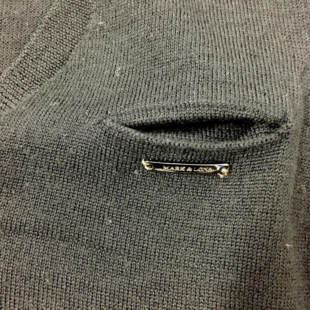超 マークアンドロナ セーター 黒×グレー 胸下スカル ライン ウール レディース S ゴルフウェア MARK&LONA