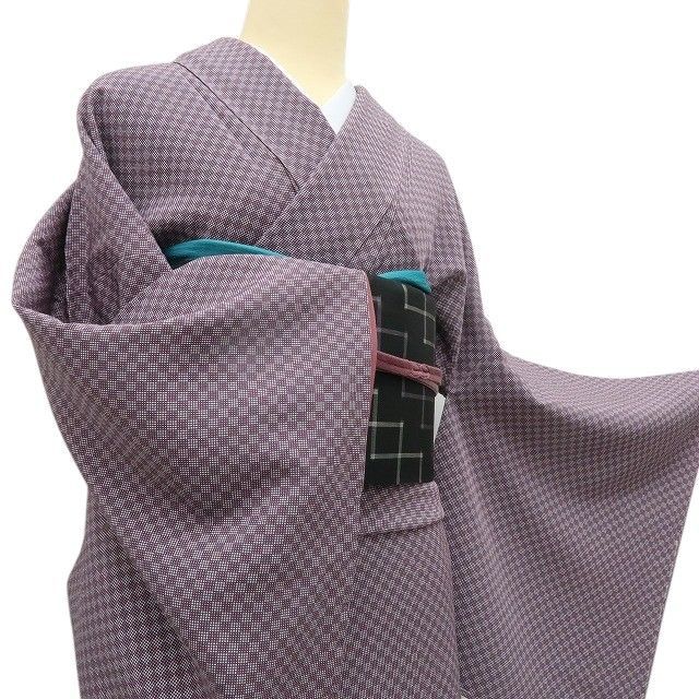■美品未着用 正絹 市松 トールサイズ 江戸小紋風 小紋 着物 A3912