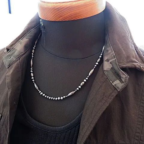 定番人気のデザインながらナジャや大ぶりのターコイズペンダントにベストマッチするとても使いまわしの効くシルバービーズネックレスです。
