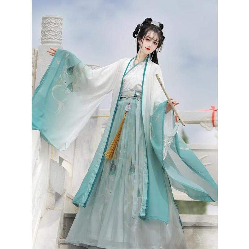 職人製作 チャイナ服 上下3点セット メンズ レディース 大人 ペアルック グラデーション 白緑 黒緑 漢服&唐装 華流コスプレ衣装 中国古代服装 ハロ