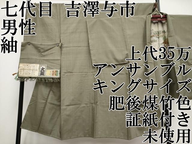 上 伝統工芸士 七代目 吉澤与市 男性 紬 アンサンブル キングサイズ 上代35万 肥後煤竹色 証紙付き s 5