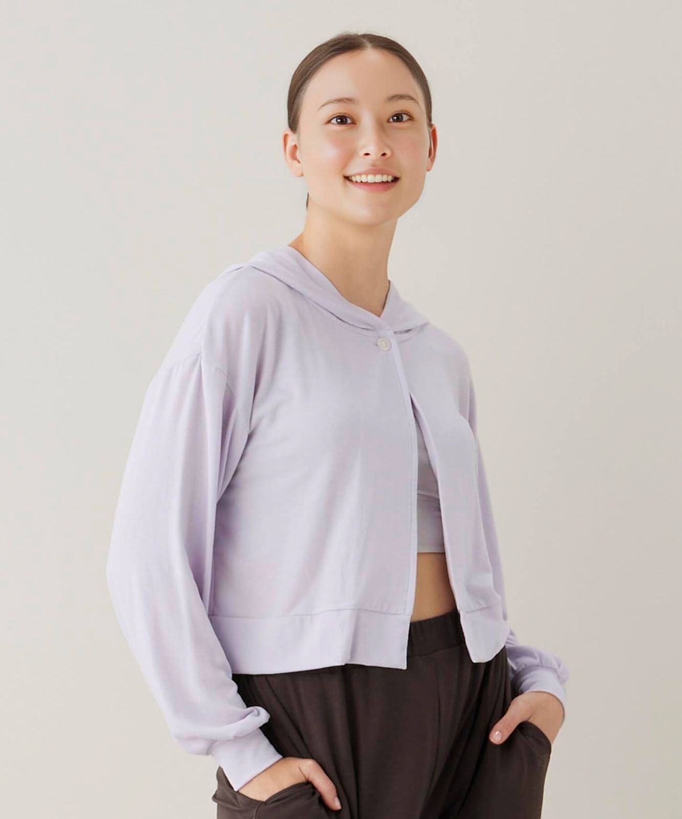 とろりと柔らかな温感素材のショート丈パーカー