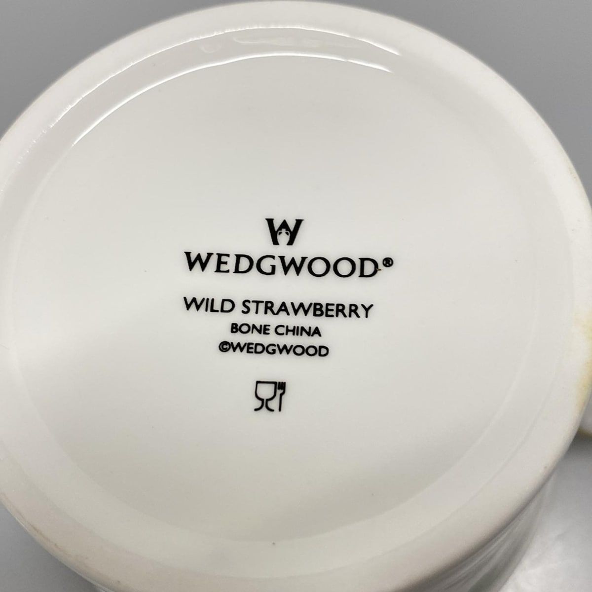 WEDG WOOD ウェッジウッド 食器 ワイルドストロベリー 白×グリーン×マルチ カップ-ソーサー×2点