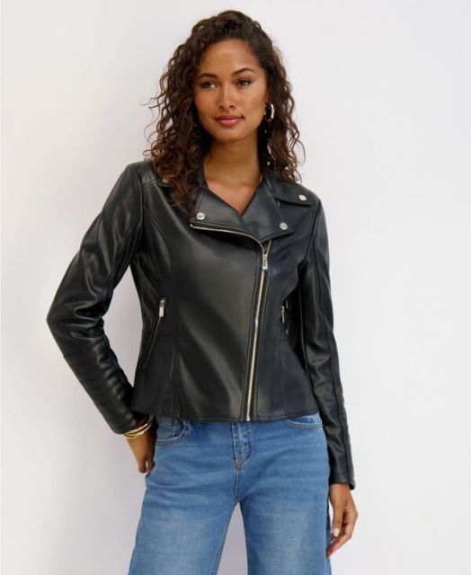 Women'sAsymmetricalPUPeplumMotoJacketwithQuiltingDetails