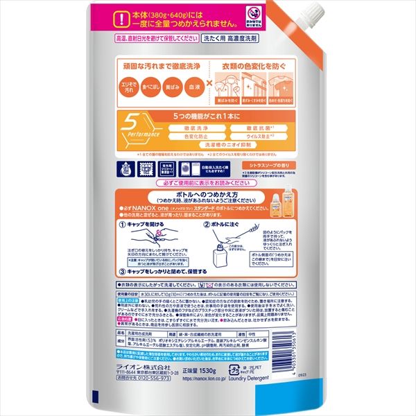 6点セット NANOX one つめかえ用ウルトラジャンボ 1530g ライオン 衣料用洗剤