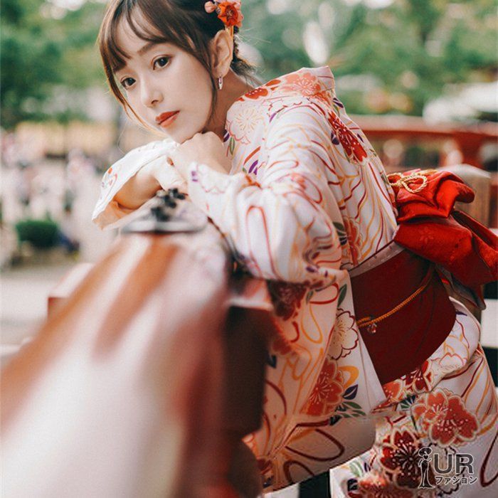 【セット内容】 浴衣+リボン帯(レッド)+髪飾り(ランダム発送)