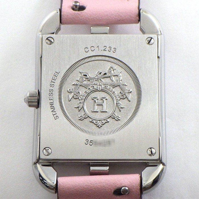 エルメス HERMES 腕時計 ケープコッド PM ドゥブルトゥール CC 1.233 ピンクサファイア ダイヤモンド付きベゼル ホワイトシェル文字盤 SS ローズサクラ レザーベルト クオーツアナログ 箱 保付き