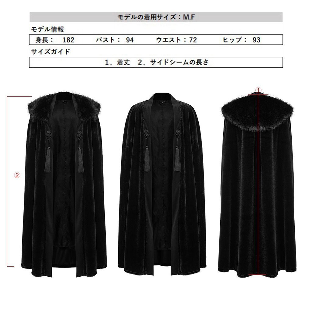 WY 1557 DPM BK 着脱フェイクファーケープタッセル付 クローク コート ファッション ゴシック ゴスロリ パンク ロック ロリィタ ビジュアル系 V系 モード系 地雷系 サブカル 個性的 コスプレ ライブ ステージ 舞台 仮装 骨格 衣装