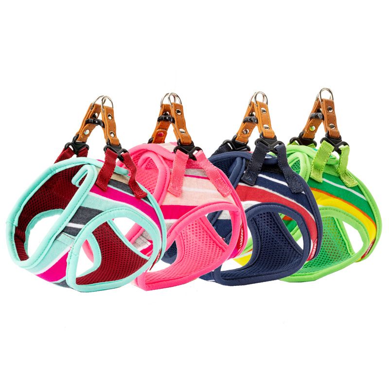 ふぞろいのボーダーがおしゃれ!元気なワンちゃんにぴったりのソフト胴輪です。
