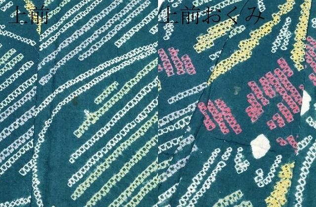 状態は接写画像のように、上前・上前おくみにシミがございますが