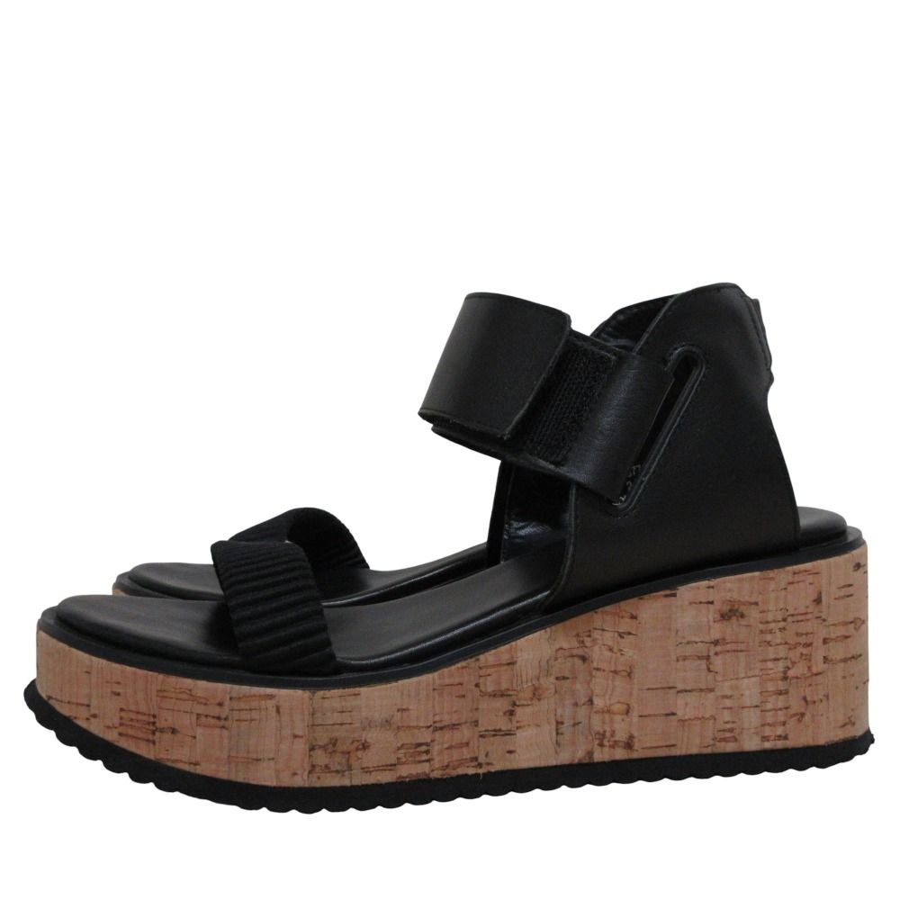 PLEATS PLEASE ISSEY MIYAKE プリーツプリーズ イッセイミヤケ ウエッジソール コルクサンダル 24.5 cm ブラック レディース 古着