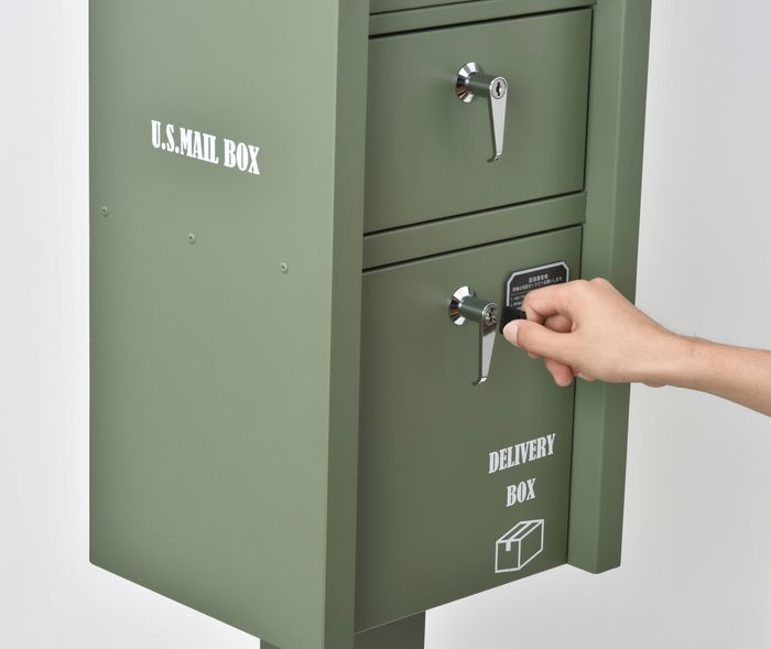 宅配BOX付スタンドポスト U.S. グリーン おしゃれ ビンテージ クラシック 洋風 簡単設置 丈夫 耐久性 店舗 玄関 エクステリア デザイン 便利 アメリカ USA ちょうどいいサイズ 置き配 宅急便 イケア デザイナ