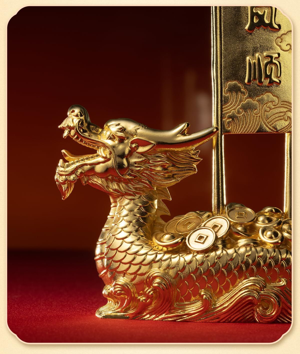 玄関 龍神 高さ20 cm 金龍 置物 金メッキ 24金 風水 開運 宝船 縁起物 金運グッズ 七福神 銅器
