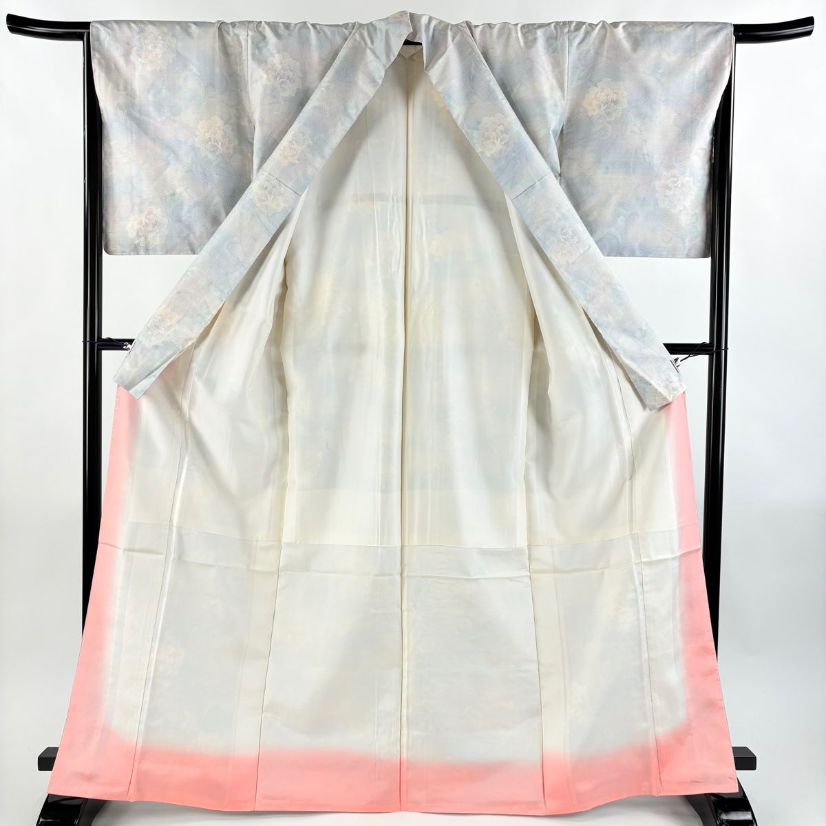 大島紬 身丈166.5 cm 裄丈67.5 L 袷 都喜ヱ門 藤白泥 証紙 花唐草 青灰色 正絹