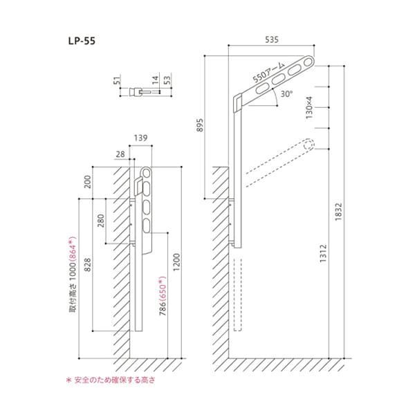 ホスクリーン 川口技研 物干し金物シリーズ LP型 LP 55 S 2本入り 設置