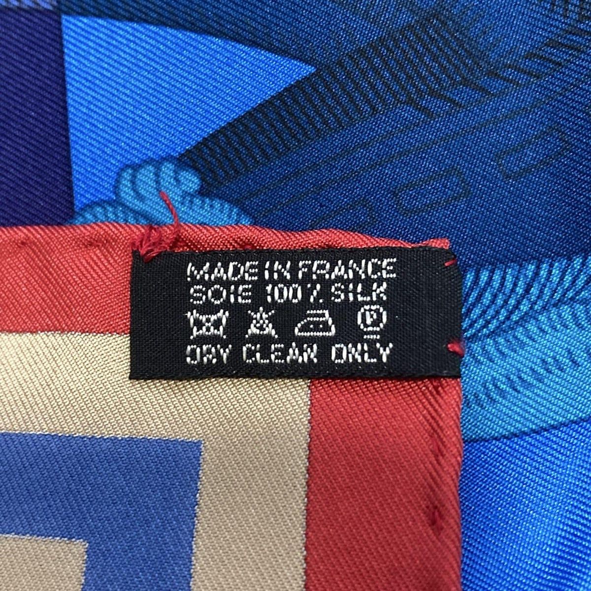 HERMES エルメス スカーフ カレ90 ブルーグレー×レッド×マルチ Della Cavalleria