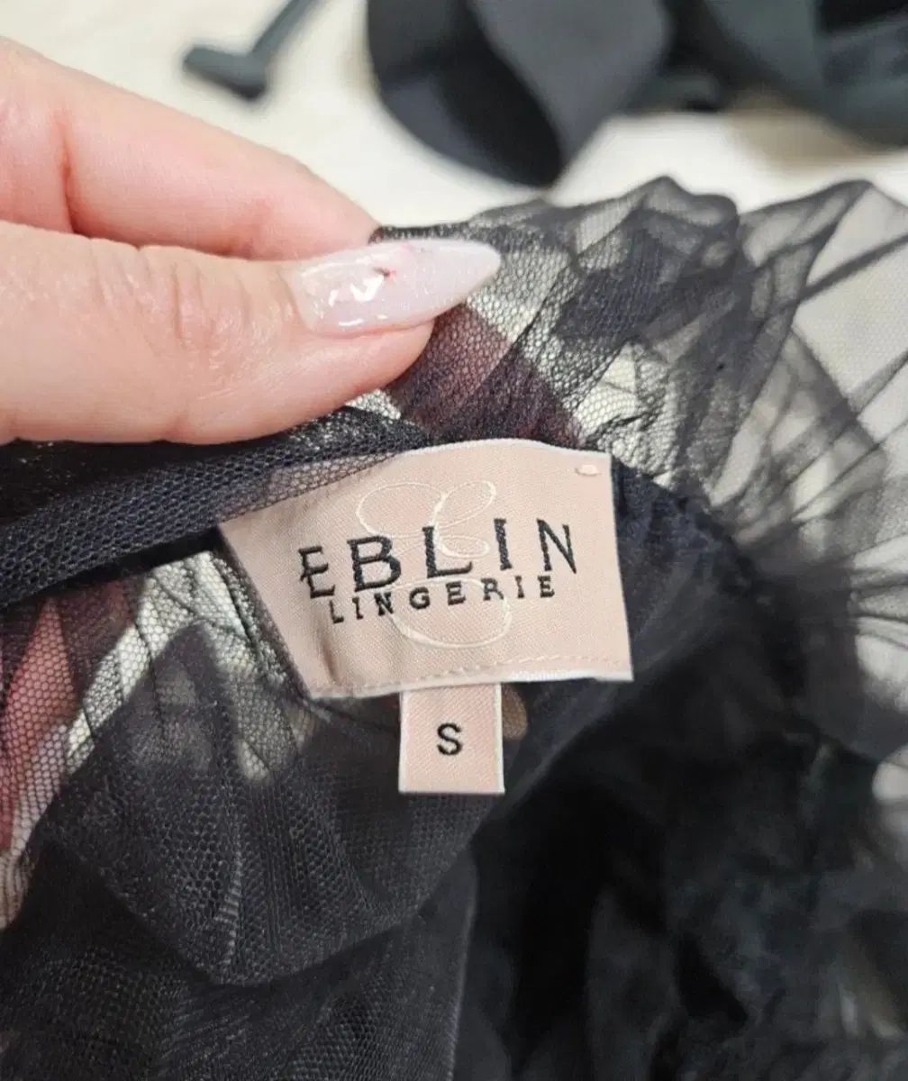 EBLIN 黒 シースルー リボン スリップ