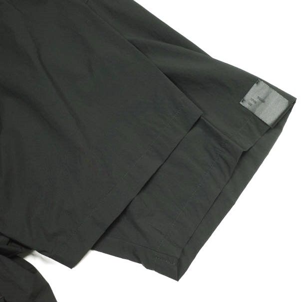 ・台襟なしのカジュアルなデザイン。肩線を前にずらし、アームホールにたっぷりと余白を持たせたドルマンスリーブ。内側に内蔵されたドローコード、裾の隠しドットボタンによりシルエットの調節が可能。胸元のポケットの他、シームポケット付き。左袖にはN.HOOLYWOOD COMPILEのアイコンであるブラックのブランドネームを配置。