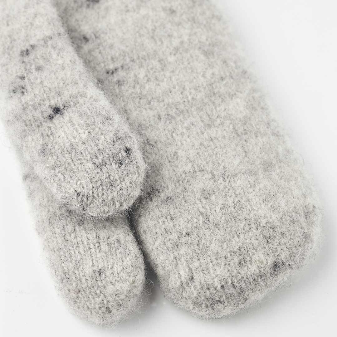 ボイルドウールを生かしたユニークな3フィンガーグローブです。ボイルドウールとは、ウールならではの縮みやほつれを防ぐため、あらかじめ熱湯内で撹拌した素材。フェルトに近い高密度に織られた生地は、冷気の浸入を遮断し、表面が雪にまみれても内部は温かさをキープします。3フィンガーはミトンのような暖かさがあり、5本指グローブに近い操作性を持ちます。晩秋から冬のフィールド散策、雪山ハイク、スノーシュートレッキングなどに最適。ウールを全面使ったレトロクラシックな装いが魅力的ですが、実は見た目以上に機能的です。