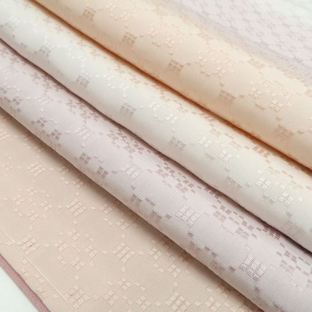 こちらのお着物は、ペールトーンの彩色で意匠の美しさにフォーカスした素朴な花織模様を込めております。浮き織紬の奥行とともに嫌みのないさりげないセンスを表現するのに最適なお召し物です。