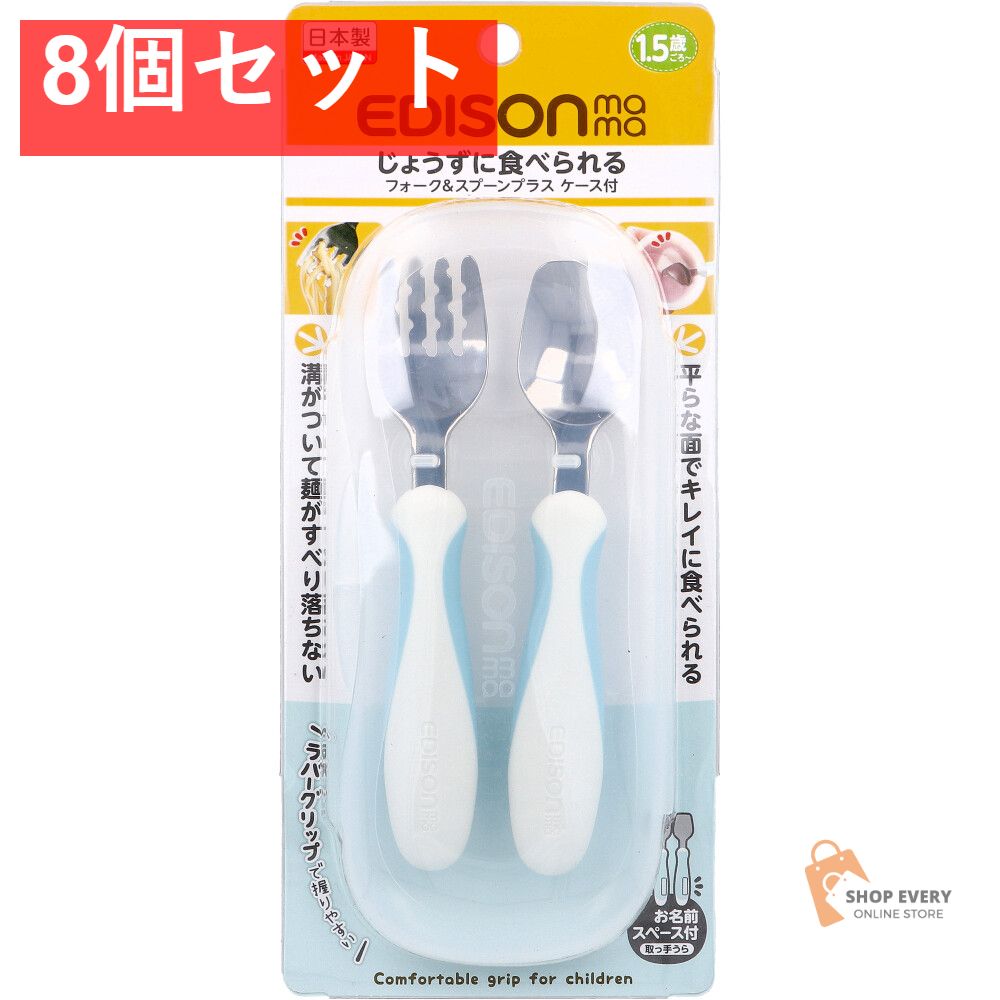 エジソンママ フォーク&スプーン プラス ケース付 ペールブルー セット