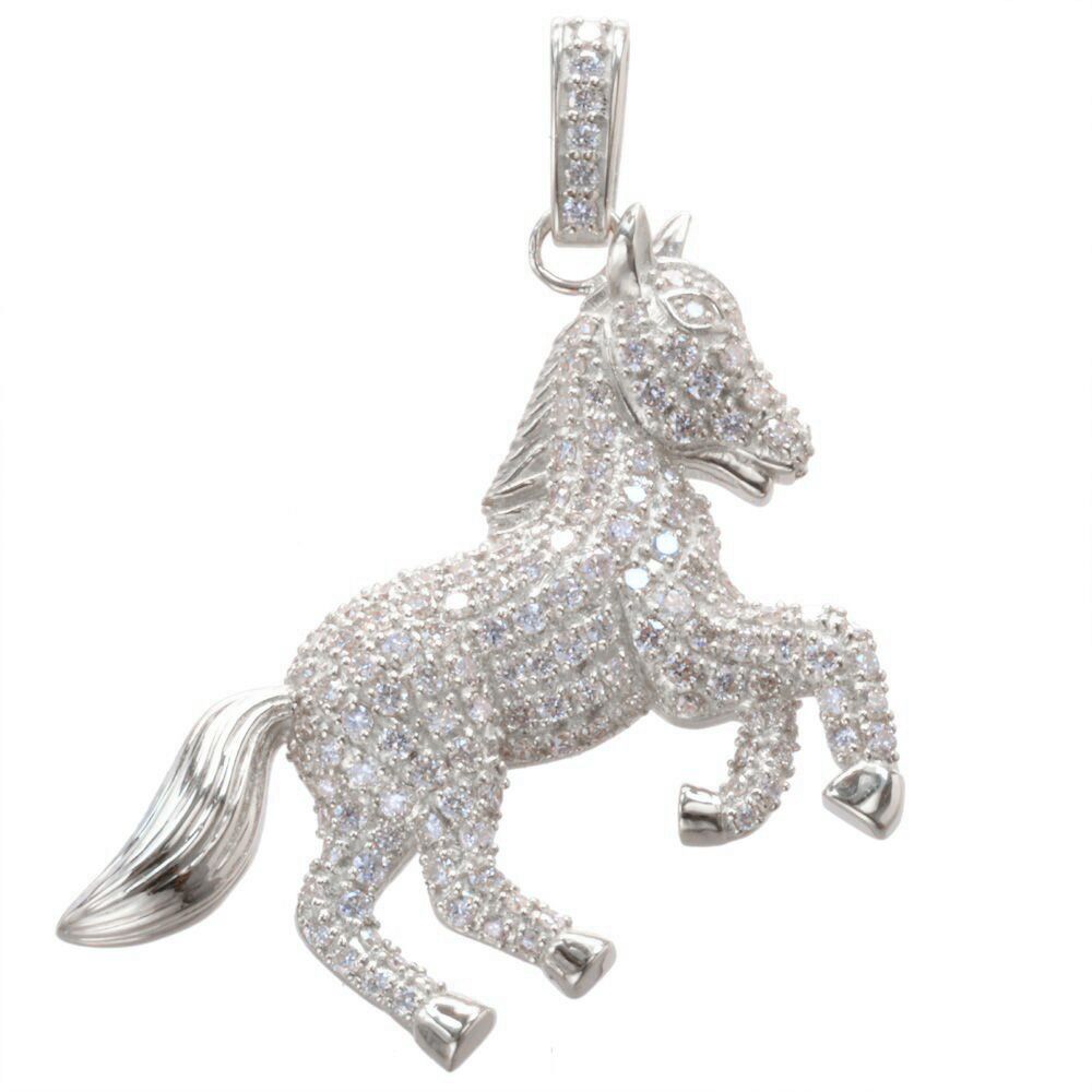18金ホワイトゴールドを使ったダイヤモンドペンダントトップです。馬モチーフにダイヤモンドを敷き詰めたデザイン。バチカン部分までぎっしりと敷き詰めたダイヤモンドは全石無色透明で良質な輝きのルースを厳選。ふっくらとした胴体、躍動感のある前足や尾の滑らかな曲線まで丁寧に表現し力強さと可愛らしさを併せ持ったホースモチーフに仕上がりました。こちらは愛らしいフォルムが強調された仔馬版となります。