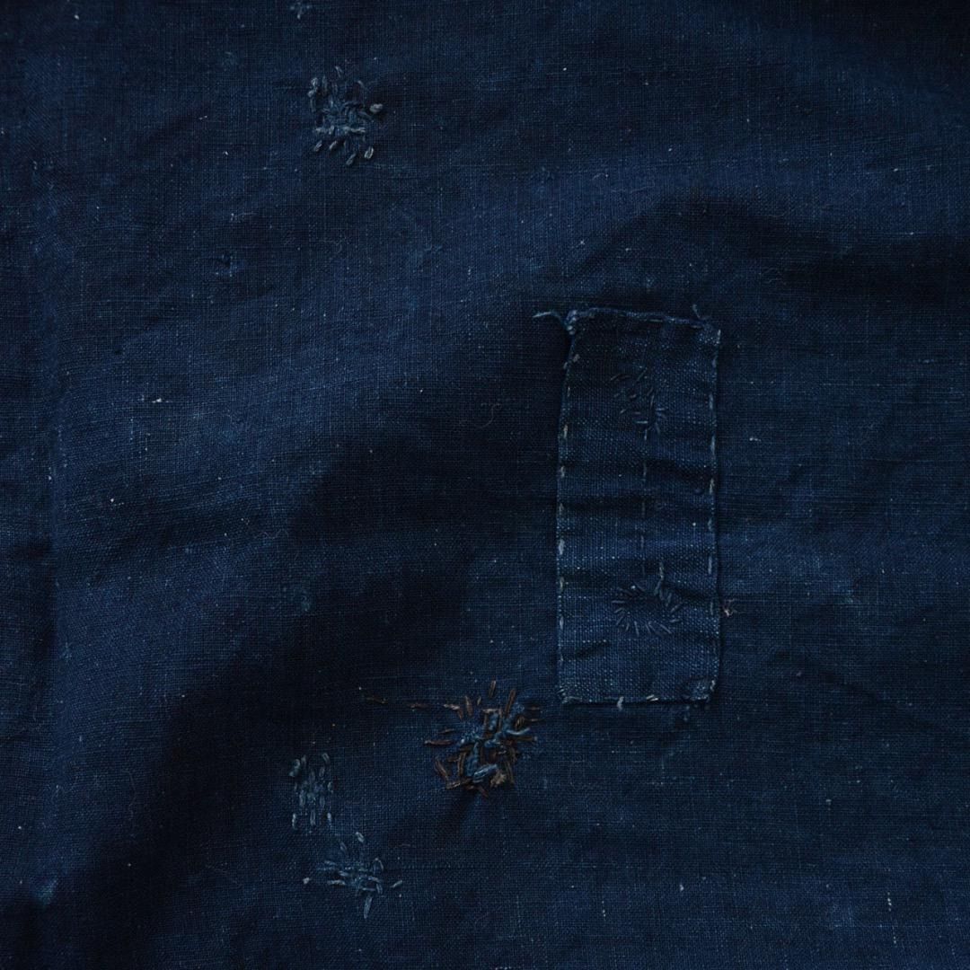 端に沿って入る細かな刺し子は、補強と装飾を兼ねた美しい仕事。中央のリペア部分も、偶然の構成美として力強く存在感を放っています。