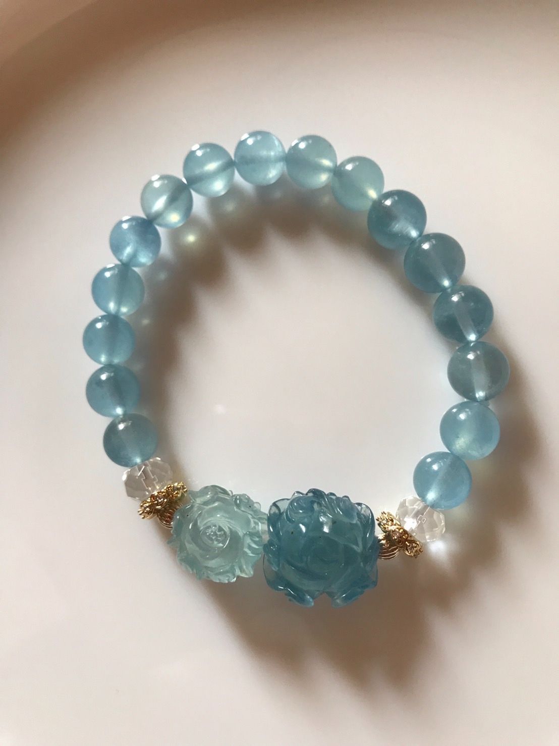 画像最後の3枚は別売りの他のアクアマリンお花デザインブレスレットとの比較です。