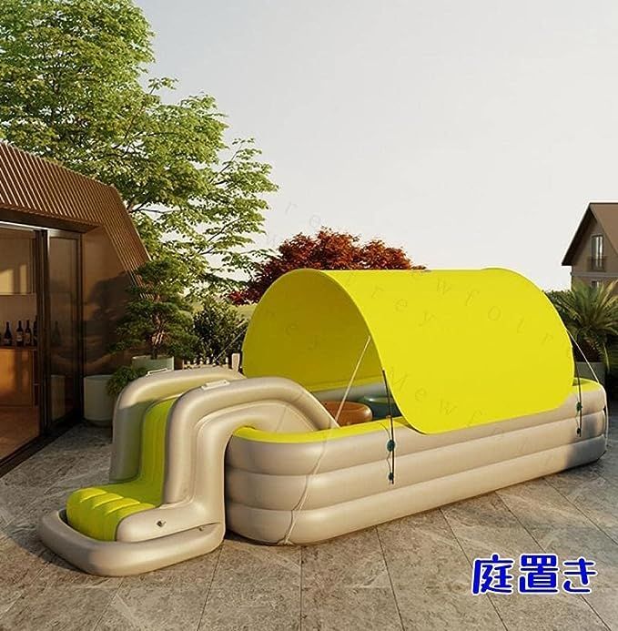 エアープール 大型プール ビニールプール プール 家庭用 子供用 ベビープール ファミリープール おもちゃ すべり台 滑り台付き 日よけ付き レジャープール 空気入れポンプ付き 子供 水遊び 折りたたみ式 260 cm イエロー グリーン