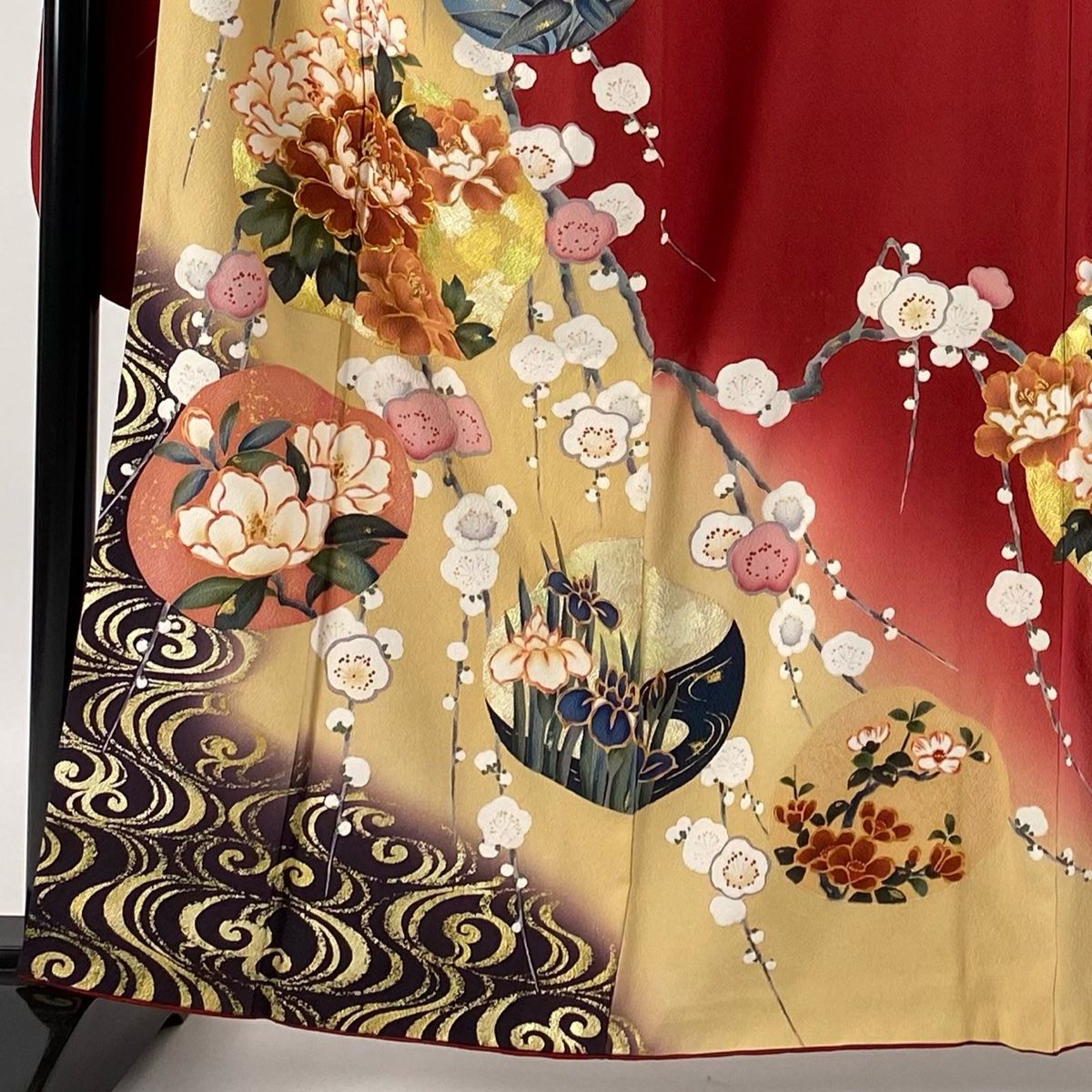 振袖 身丈159.5 cm 裄丈67 M 袷 ますいわ屋 牡丹 枝梅 金糸 金彩 赤 正絹 秀品