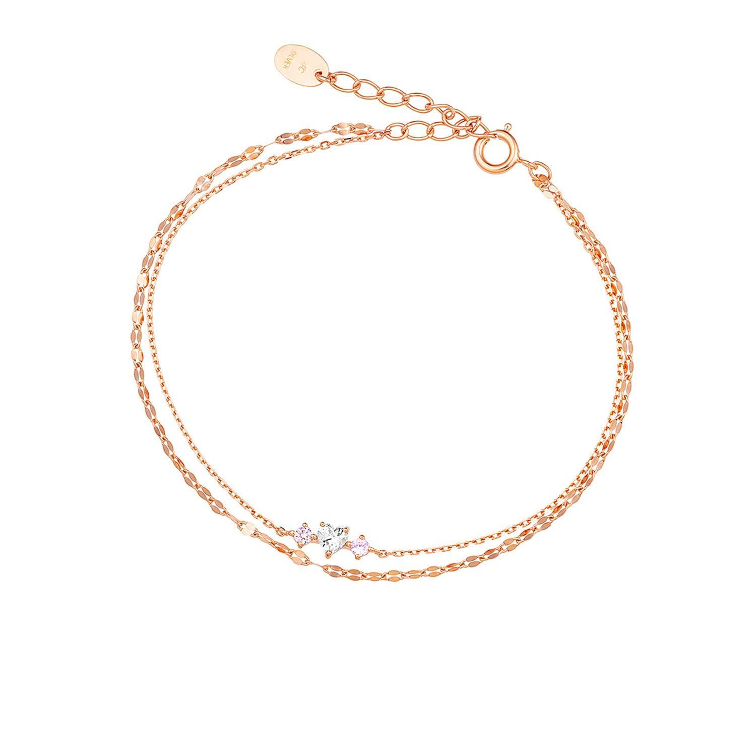 ハート型の石とピンクのカラーストーンをあしらった2連のブレスレット。