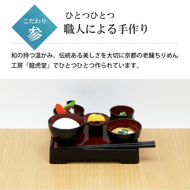 ちりめん細工で作られた精進料理です。手間いらずで飾っていただけます。