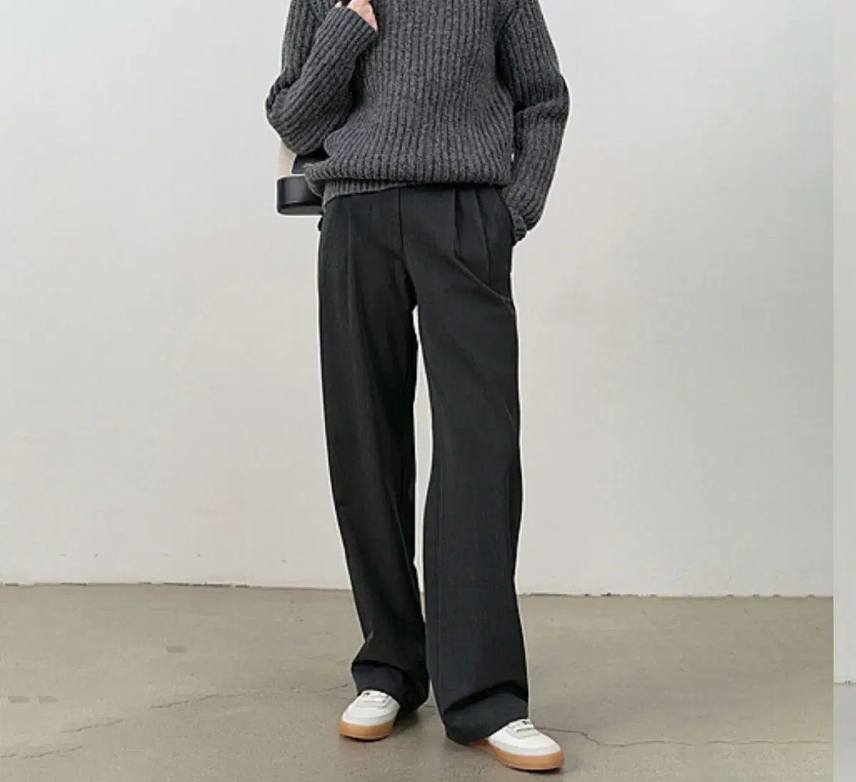 Dunst ダンスト プリーツ ワイド スラックス チャコール S