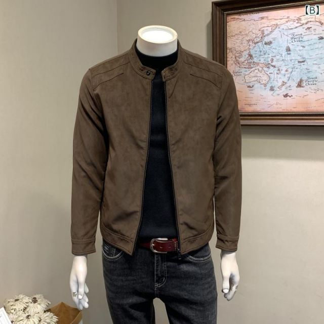 2 XL メンズ 服 シンプル ファッション オシャレ 大人 かっこいい 大きいサイズ ストリート 紳士服 春秋冬 スエード エコ レザー ジャケット スタンド スリム